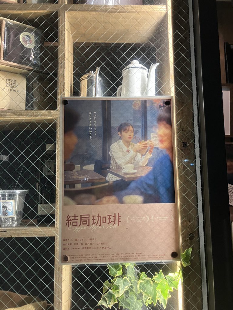 店舗にはもちろん映画のポスター。映画タイトルは「結局珈琲」。