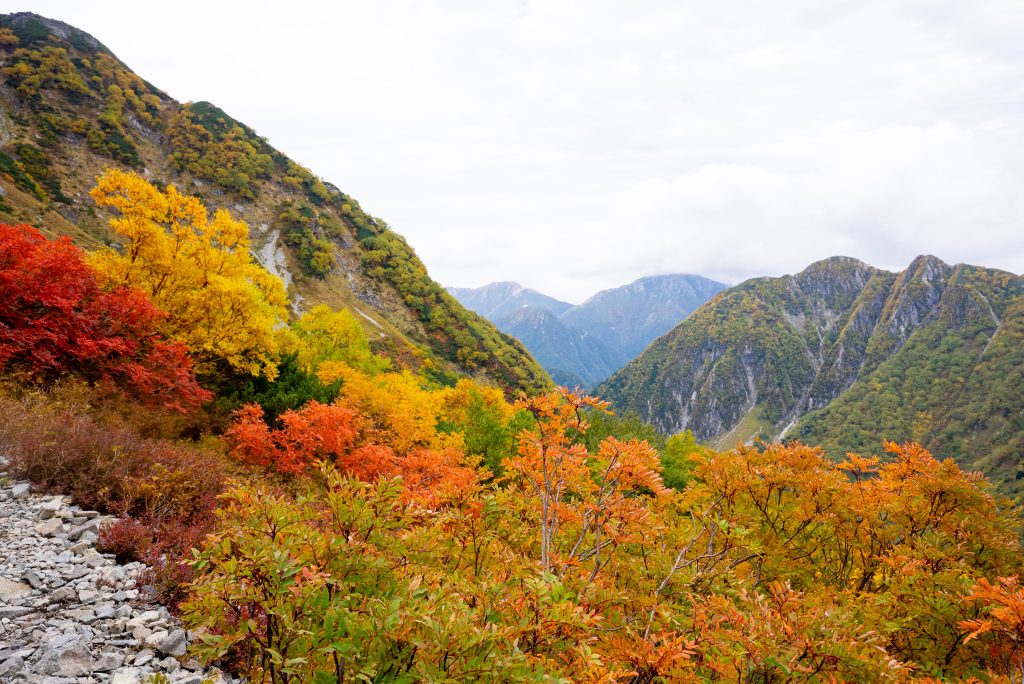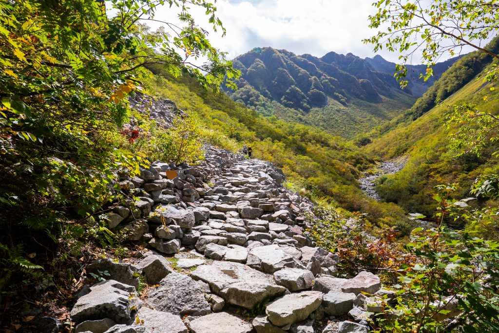 明神、徳沢、横尾と過ぎて、本谷橋を超えたあたりから高度があがっていきます。
