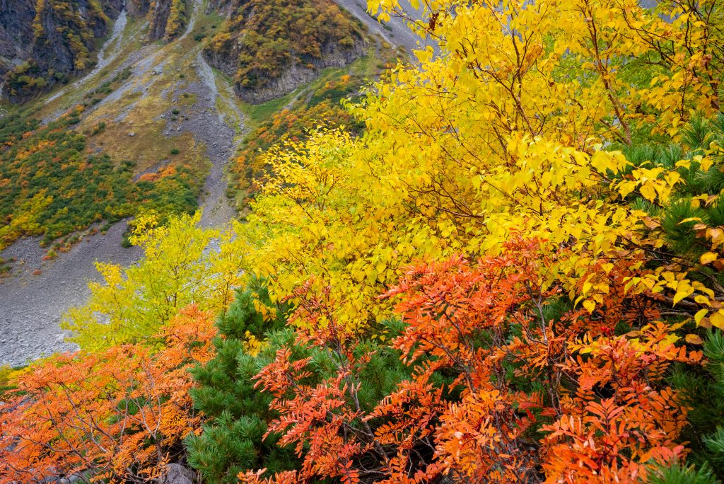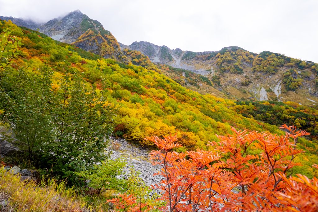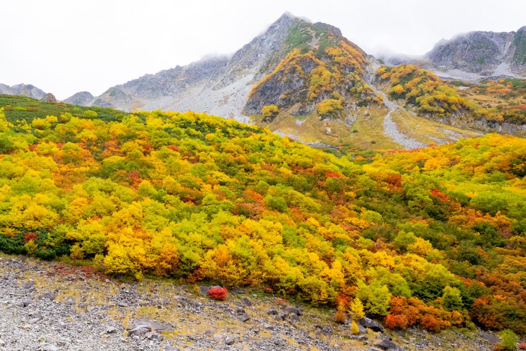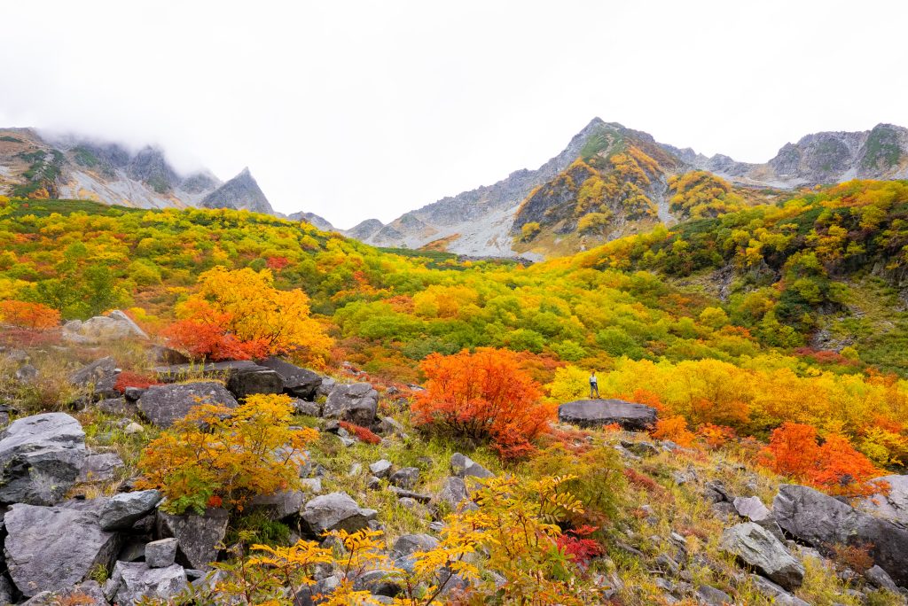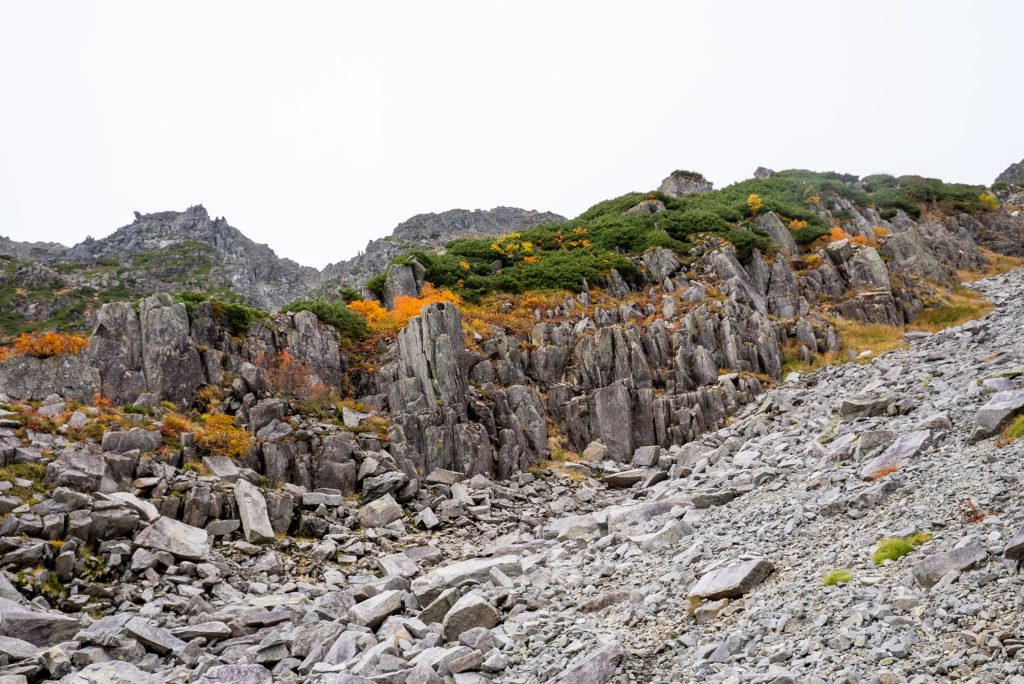 を尻目に、早速ブラブラタモタモ、穂高連峰の中腹に広がる涸沢カールへと向かいます。