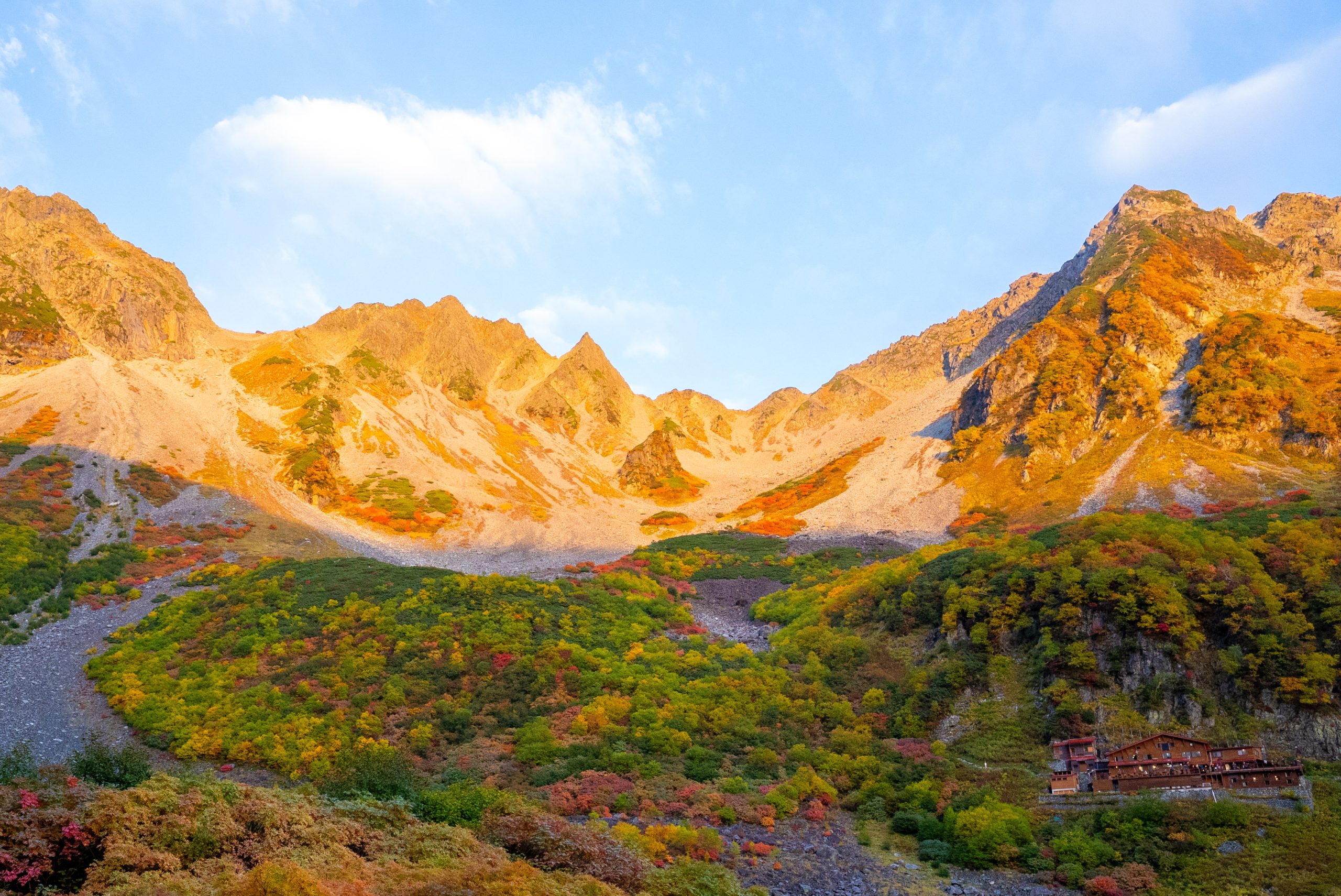 を尻目に、早速ブラブラタモタモ、穂高連峰の中腹に広がる涸沢カールへと向かいます。