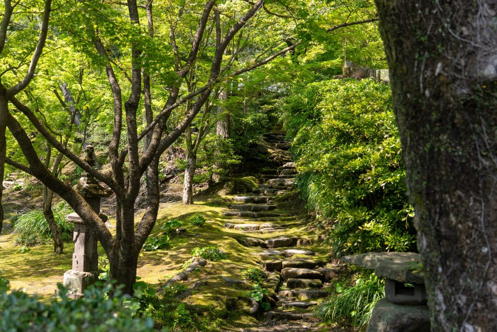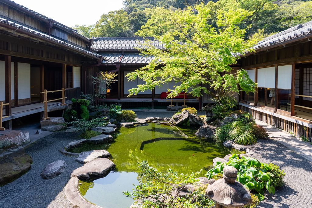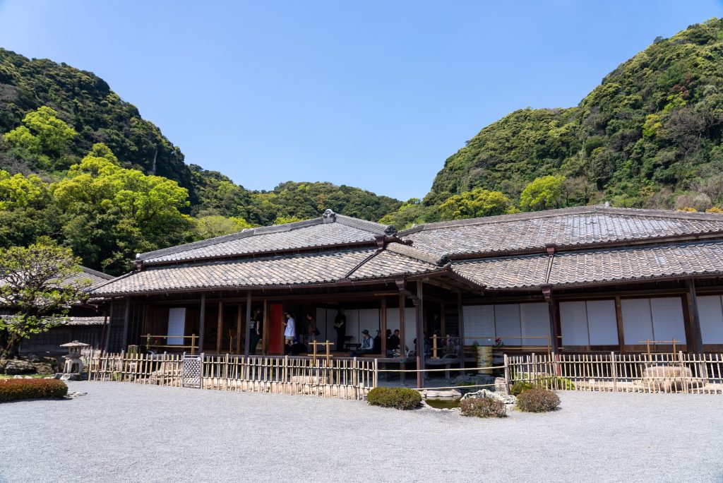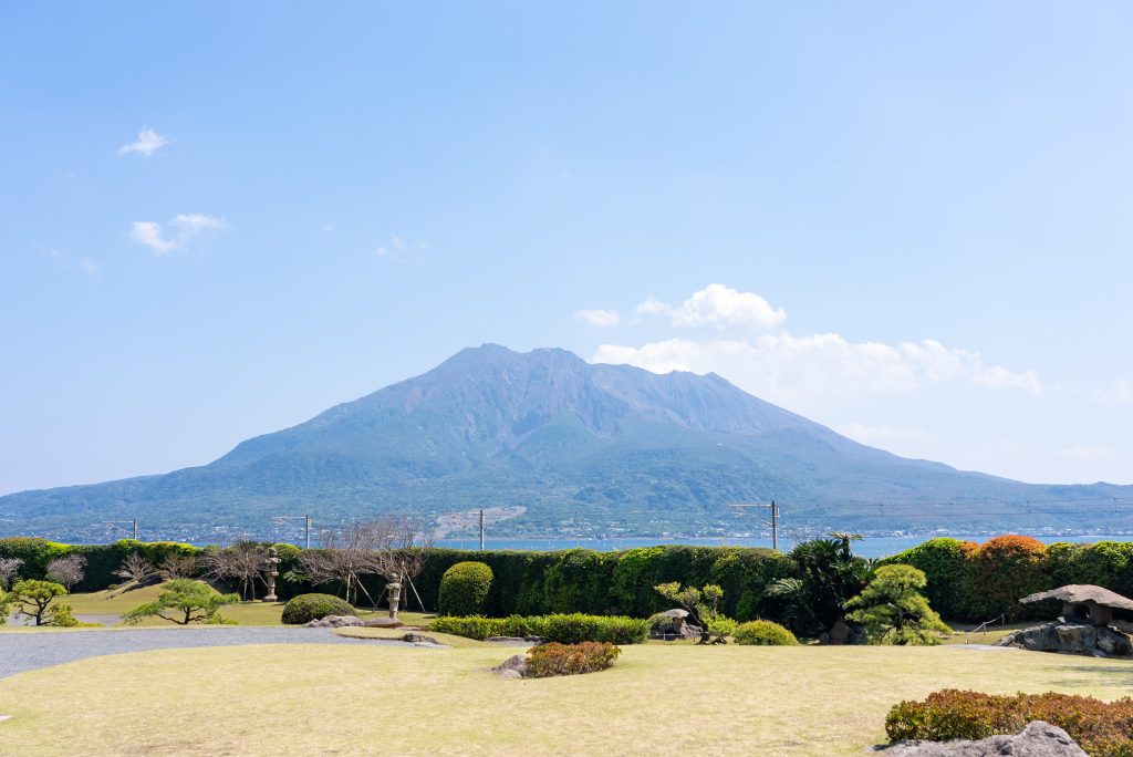 ここは薩摩藩・島津家の別邸で庭園越しに望む桜島がとにかく雄大。