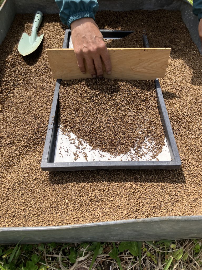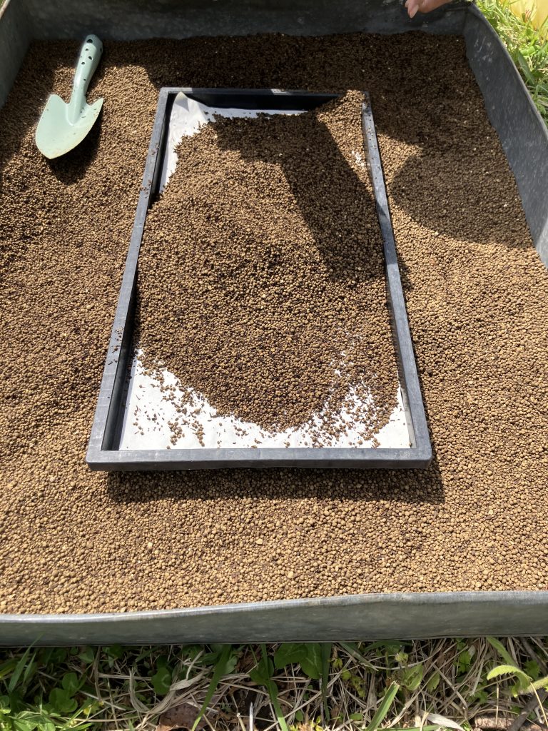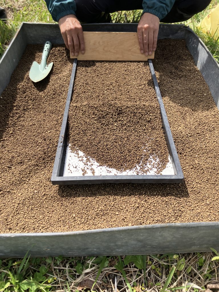 土台が完成です。ここで一旦プールづくりを離れ、種まきを始めます。
