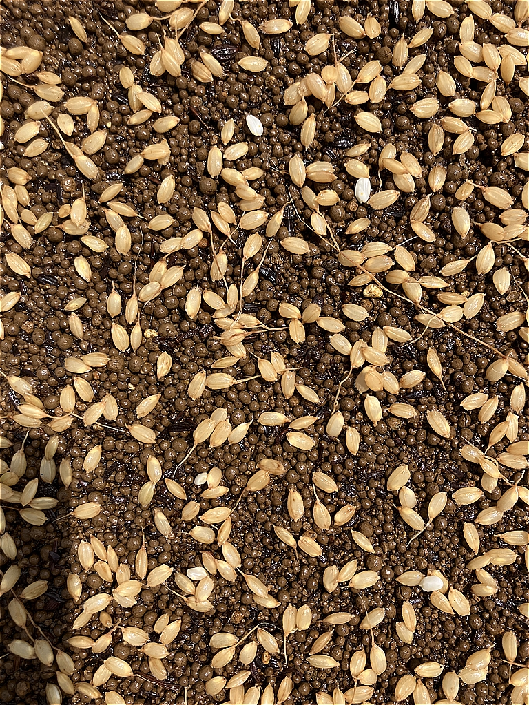 全部まくと、表面が種籾デコレーションになります。