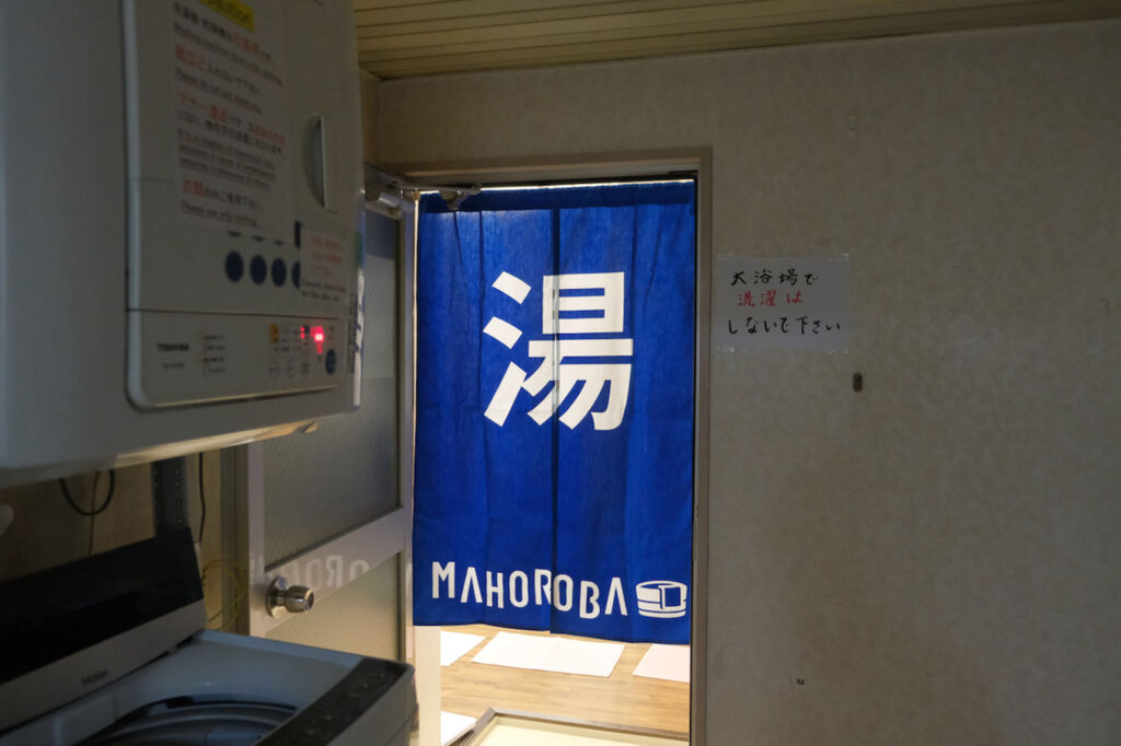 軽快でリズム感のあるロゴの制作に加え、お風呂場の暖簾も制作しました。